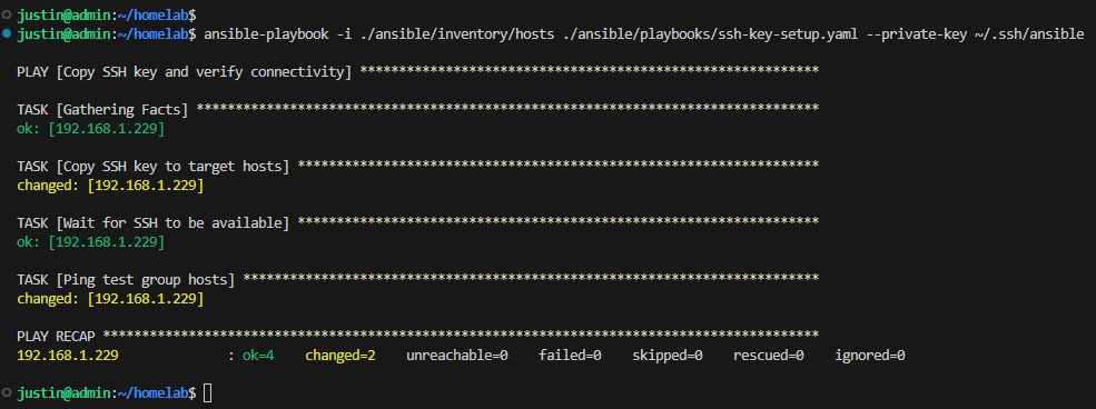 ansible-playbook -i ./ansible/inventory/hosts ./ansible/playbooks/ssh-key-setup.yml --user justin --ask-pass
